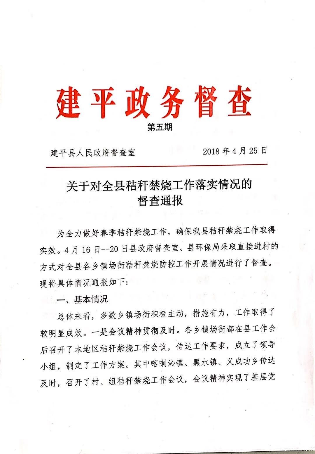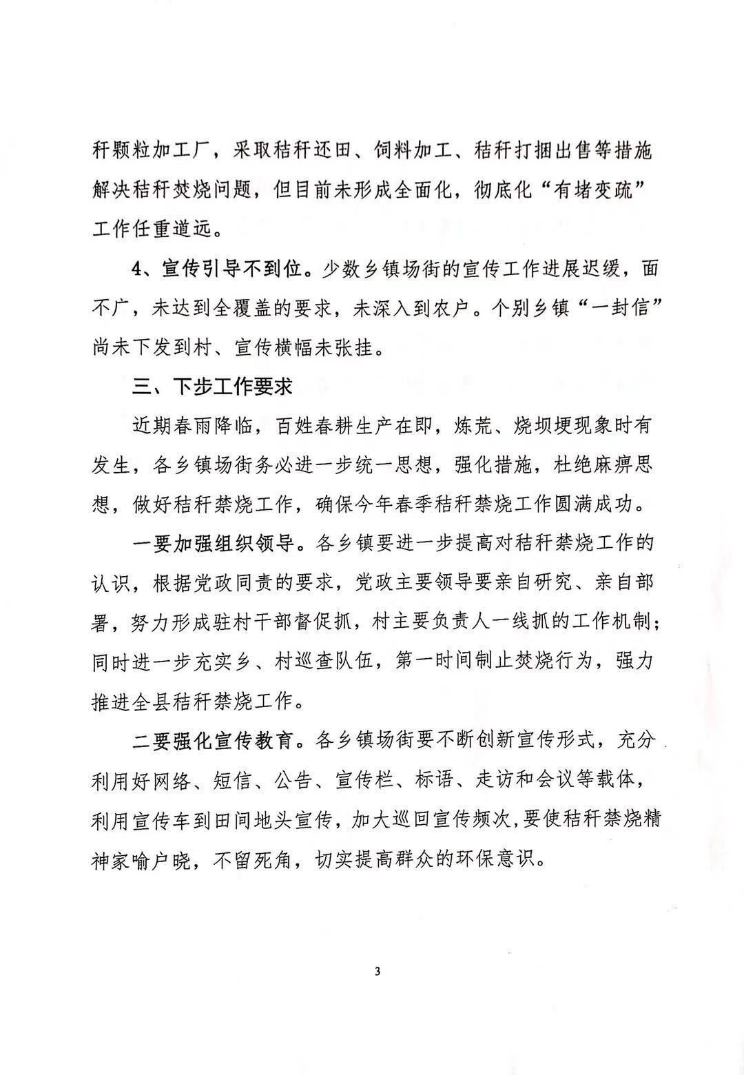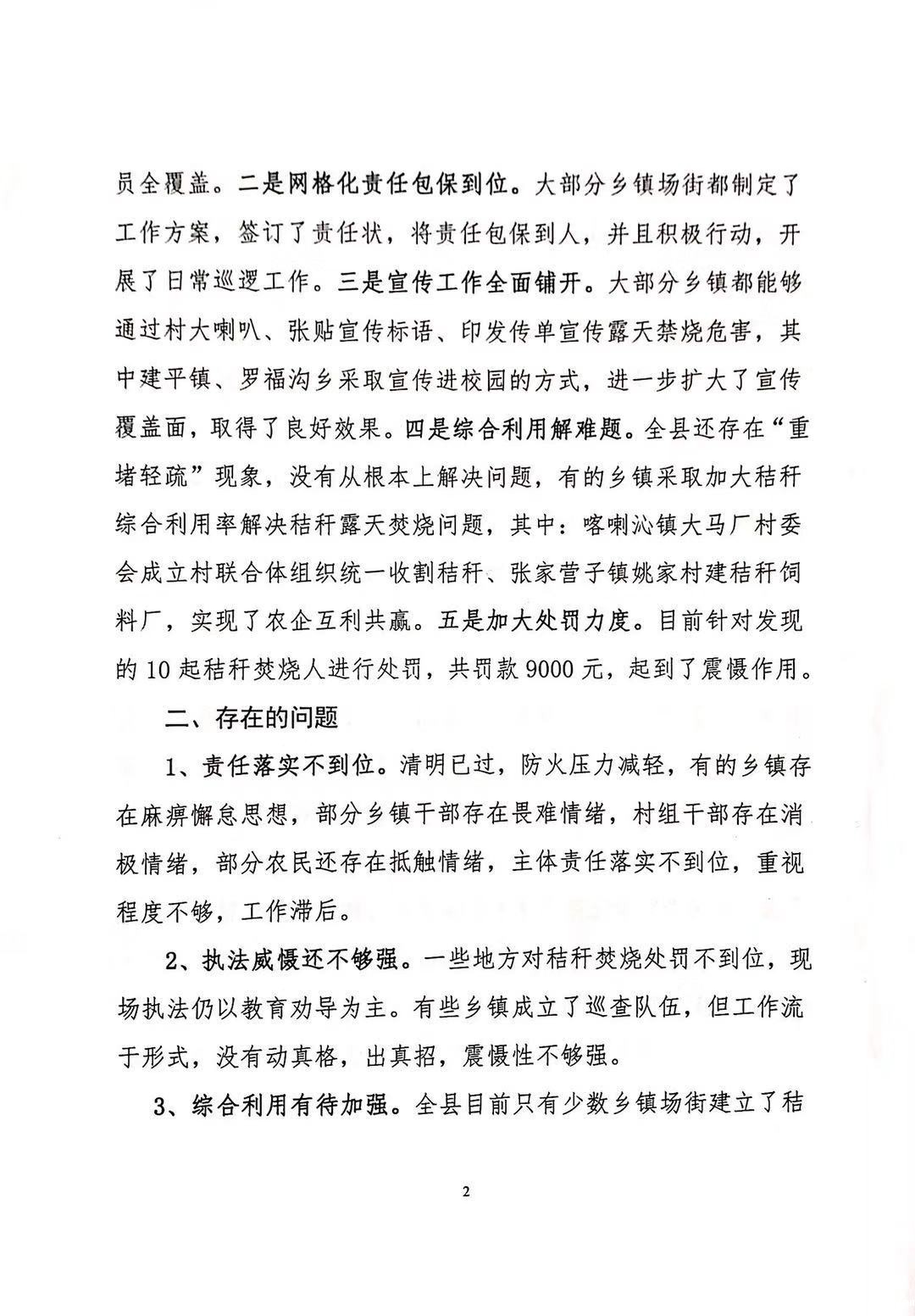 关于对全县秸秆禁烧工作落实情况的督查通报
