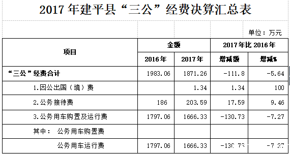 自中央八项规定出台以来,我县对部门“三公”经费从严把关。2018年“三公”经费支出比2017年支出有所下降,主要原因:一是各部门严格贯彻落实党政机关厉行节约有关规定,严格控制出国(境)团组;二是车改政策实施以来,各部门严格规范公务用车使用,减少了车辆运行费用;三是规范公务接待活动,严格控制接待标准。